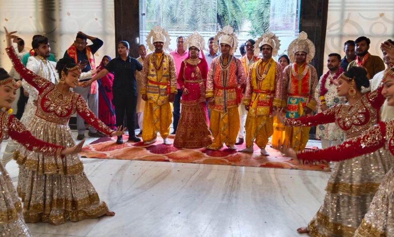 रेड कार्पेट पर मुंबई के कलाकारों ने प्रभु राम, माता सिया और अन्य स्वरूपों की आरती करते हुए मुख्य मंच तक अगवानी की। जैसे ही माता जानकी के साथ प्रभु राम के दिव्य दर्शन मिथिलावासियों को हुए, जयकारों के साथ छायाचित्र लेने की होड़ मच गई।