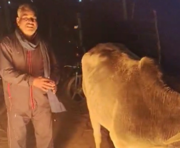 खंदौली में आधी रात कटीले तार में फसी गाय, सूचना पर दौड़े भाकियू नेता व गौ सेवक