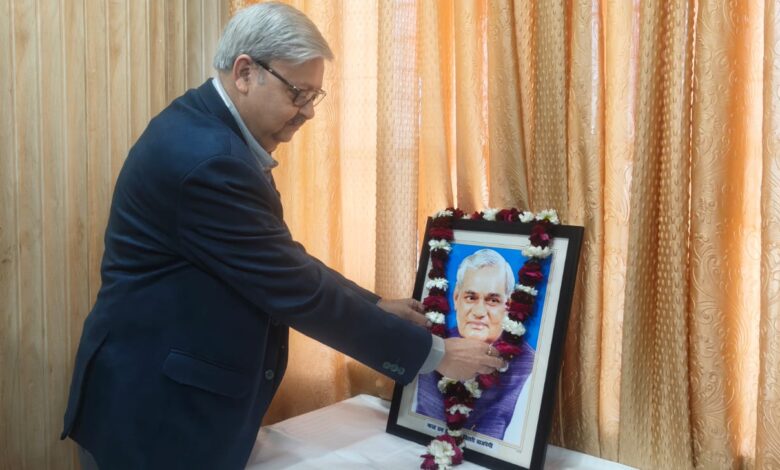 आगरा। जनपद के सभी सामुदायिक स्वास्थ्य केन्द्रो पर आयोजित हुआ भारत रत्न अटल बिहारी वाजपेई के जयंती कार्यक्रम भारत रत्न पूर्व प्रधानमंत्री अटल बिहारी वाजपेई के जयंती के अवसर पर आज दिनांक 25 12 2025 को मुख्य चिकित्सा अधिकारी कार्यलय सभागार में भारत रत्न अटल बिहारी वाजपेई के चित्र पर मुख्य चिकित्सा अधिकारी डॉ अरुण श्रीवास्तव तथा अन्य अधिकारियों और कर्मचारियों ने माल्यार्पण किया और अपने अपने श्रद्धा सुमन अर्पित किये डॉ नंदन सिंह,डॉक्टर अंशुल पारीक, डॉक्टर ऋषि गोपाल, डॉ एस के राहुल उपमुख्य चिकित्सा अधिकारी ने व्याख्यान कार्यक्रम में बोलते हुए माननीय अटल बिहारी वाजपेई द्वारा राष्ट्र को दिए गए योगदान के विषय में चर्चा की व्याख्यान कार्यक्रम का संचालन करते हुए स्वास्थ्य शिक्षा अधिकारी पंकज जायसवाल उनके जीवन परिचय तथा संघर्षों के विषय में चर्चा की वित्त एवं लेखा अधिकारी श्री राहुल गौतम ने प्रधानमंत्री रहते हुए परमाणु परीक्षण तथा कारगिल युद्ध के समय लिए गए साहसिक निर्णय के विषय में चर्चा की, जिला कार्यक्रम प्रबंधक श्री कुलदीप भारद्वाज में उनके काव्य हृदय तथा कोमल व्यक्तित्व पर चर्चा की, अंत में मुख्य चिकित्सा अधिकारी डॉक्टर अरुण श्रीवास्तव ने माननीय प्रधानमंत्री भारत रत्न श्री अटल बिहारी वाजपेई से अपने मुलाकात के संस्मरण की चर्चा करते हुए उनके सहज, सरल और काव्य व्यक्तित्व के विषय में चर्चा किया और व्याख्यान कार्यक्रम में उपस्थित सभी अधिकारियों और कर्मचारियों का धन्यवाद दिया,जन्म सती वर्ष व्याख्यान कार्यक्रम में श्री विकास शर्मा,श्री सुभाष चौधरी,श्री अजीत,श्री एसपी सत्संगी,श्री सचिन, श्री दीपक श्रीवास्तव,श्री आर के चौधरी,श्री मती शिखा सक्सेना ,दिनेश,बॉबीआदि उपस्थित थे।
